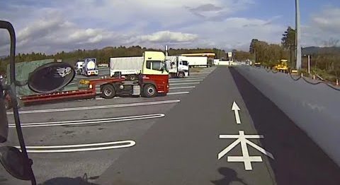 高速道路のパーキングで 軽自動車を吹き飛ばしかけた