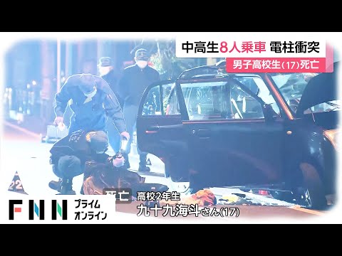 神奈川・藤沢市で20日夜、10代の男女8人が乗った軽自動車が電柱に衝突し、17歳の男子高校生が死亡、中学生を含む10代の男女6人が重軽傷を負った。