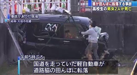 1:カーマニア2021.02.21(Sun) 軽自動車が道路脇の田んぼに転落する