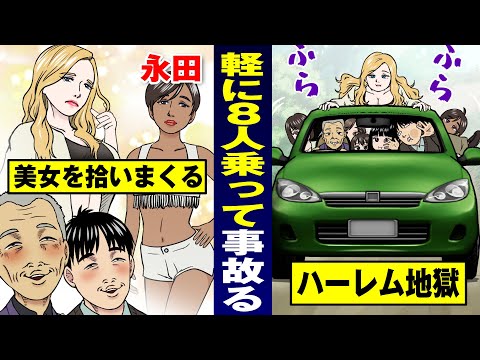 【ハーレム】軽自動車に美女7人乗せてみた…定員オーバーで事故る。【法律漫画】って<人気の自動車だぜ。