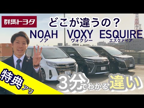 【ミニバン】どこが違うの?3分でわかるノア・ヴォクシー・エスクァイアの違い!!購入特典アリ!〜群馬トヨタ〜って<人気の自動車だぜ。