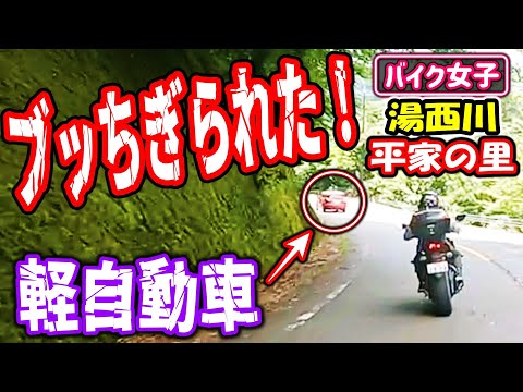 帰りに通った峠道に差し掛かった途端!それまでゆっくり走っていた軽自動車が、突如飛ばし始めた!必死に追いかけるバイク女子!結果はいかに!