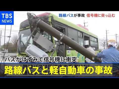 けさ、群馬県前橋市の交差点で路線バスと軽自動車が衝突し、バスが交差点の信号機に突っ込む事故がありました。