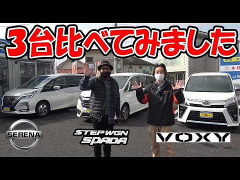 人気の最新型ミニバン3車種を一挙に比較!! ヴォクシー・ステップワゴン・セレナの外装の違いをくらべてみた!!【外装編 トヨタ ホンダ ニッサン】って<人気の自動車だぜ。