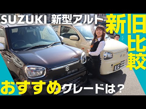 軽自動車で【SUZUKI新型アルト新旧比較】ロングセラー軽自動車の最新!内装&外装&装備レビュー!これから購入検討の方におすすめのグレードも紹介!ハイブリッドX出てくると思わなかったわ