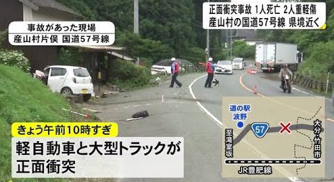 産山村の国道で軽自動車とトラックが正面衝突 1人死亡・2人重軽傷【熊本】 (22/06/18 18:00)