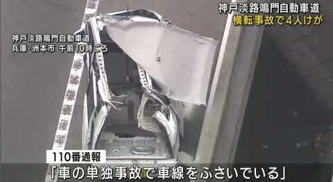【単独事故で車線ふさいでいる】軽自動車の横転事故で4人けが 神戸淡路鳴門道【兵庫・洲本市】