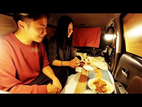 狭い軽自動車で自炊しながら生活するカップルと犬2匹の日常って<人気の自動車だぜ。