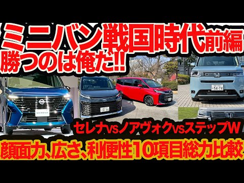 新型 セレナ vs ノアヴォクシー vsステップワゴン 【ミニバン戦国時代】顔面力、内装、広さ、シートアレンジ、乗降性…全10項目ガチ比較!! 前編って<人気の自動車だぜ。