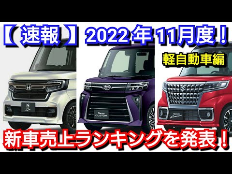 新車売上ランキング!2022年11月 軽自動車編!新型タント、新型NーBOXの販売台数が!って<人気の自動車だぜ。