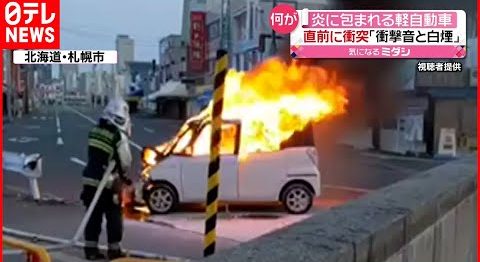 【火事】炎に包まれる軽自動車…ガードレールに衝突か 札幌市