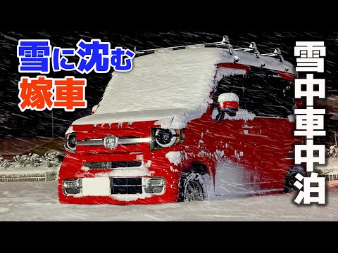 嫁の軽自動車で雪中車中泊 | 凍った車内でバッテリー終了 | 石油ファンヒーターは氷点下車中泊で使えるのが検証 | 赤いN-VANって<人気の自動車だぜ。