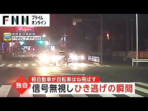 信号無視し ひき逃げの瞬間 軽自動車が自転車はね飛ばすって<人気の自動車だぜ。