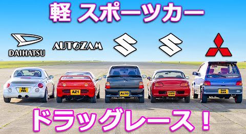 【軽自動車ドラッグレース!】ダイハツ コペン vs スズキ カプチーノ vs マツダ オートザム AZ-1 vs スズキ アルト ワークス vs 三菱 ミニカ ダンガン