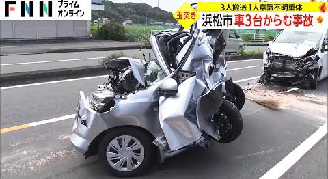 車3台からむ事故 3人搬送 1人意識不明の重体