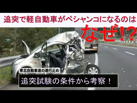 追突に弱いと噂される軽自動車がなぜ追突でペシャンコになってしまうのか、追突試験の条件から考察しました!