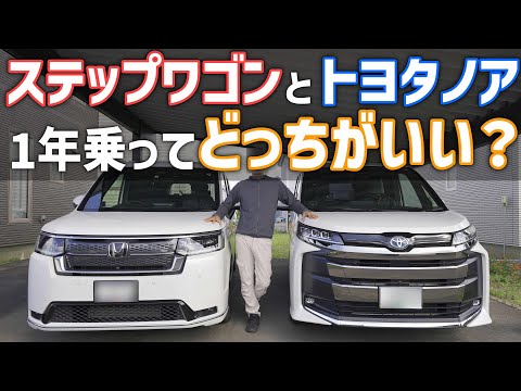 ホンダのステップワゴンとトヨタのノア、ヴォクシー、日本を代表するミドルサイズミニバン2台に1年間乗ってみての正直にどっちの車がいいのか、比較、感想を動画にしてみました。