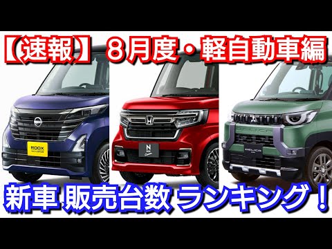 新車売上ランキング!2023年8月、軽自動車編!新型N-BOX、新型ルークス、デリカミニの販売台数が!って<人気の自動車だぜ。