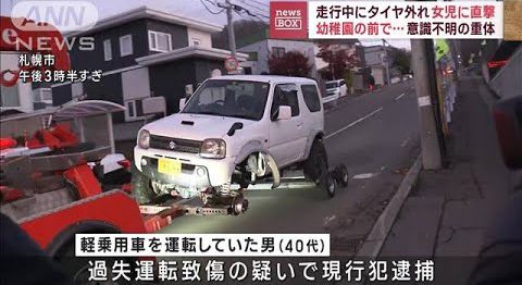 1:カーマニア2023.11.16(Thu) 軽自動車タイヤ外れ女児に直撃 幼稚