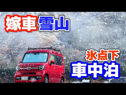 軽自動車で5分でキャンピングカーに変身【嫁の中古軽自動車で氷点下雪中車中泊 】普段使いの車→週末車中泊仕様へDIYし豪雪地帯へ【赤いN-VAN】出てくると思わなかったわ