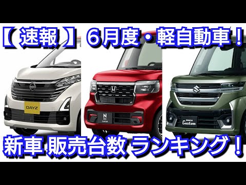 【速報】新車売上ランキング!6月・軽自動車!ダイハツの販売台数が復活!新型スペーシア、新型デイズ、新型N-BOXがって<人気の自動車だぜ。