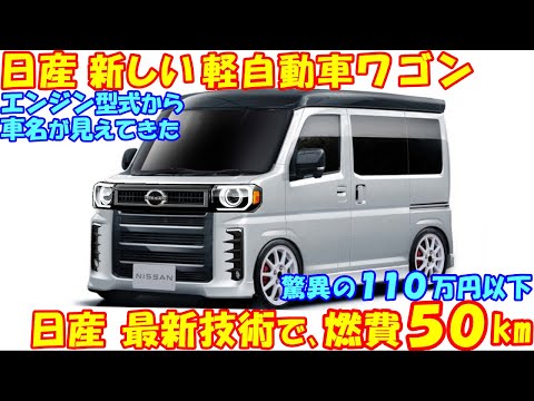 110万円! 日産 新型 軽自動車ワゴン。 最新の技術で燃費50㎞で新登場…など最新予想情報。って<人気の自動車だぜ。