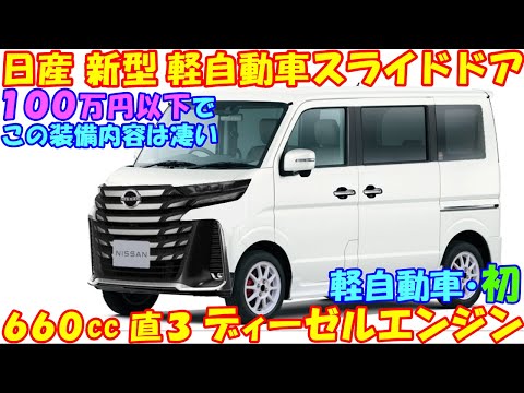 日産 新型 軽自動車スライドドア 登場! 100万円以下/ディーゼルエンジン/燃費45kmなど…魅力満載。って<人気の自動車だぜ。