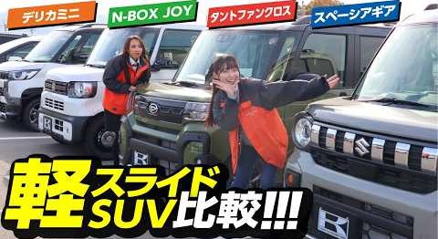 【軽スライドSUV徹底比較】車屋女子が15分で最新全4車種を比較!装備や使い勝手、荷室で選ぶならどれ?スペーシアギア・N-BOX JOY・デリカミニ・タントファンクロス