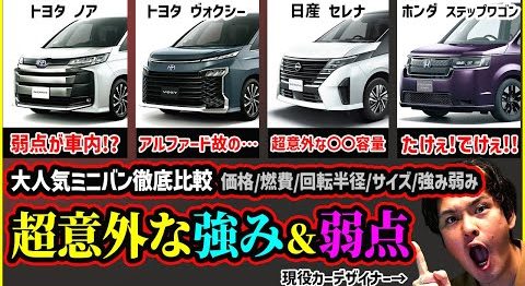 【意外な弱点続出】大人気ミニバン全部徹底比較した結果…【トヨタノア/ヴォクシー/日産セレナ/ホンダステップワゴン】