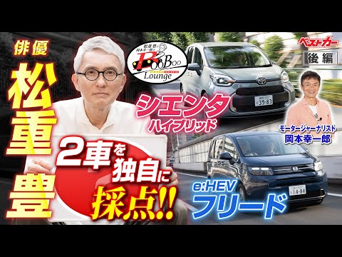 コンパクトミニバンといえばトヨタシエンタとホンダフリード。この2台は熾烈な販売競争を繰り広げています。松重さんがこの2台を試乗チェック!! はたして、どのような評価をするのでしょうか? 前編の外観&室内チェックに続き、後編は試乗チェックと5つ星評価で採点します!