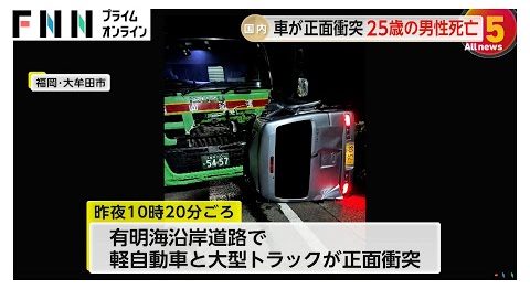 1:カーマニア2025.11.29(Sat) 軽自動車と大型トラックが正面衝突し