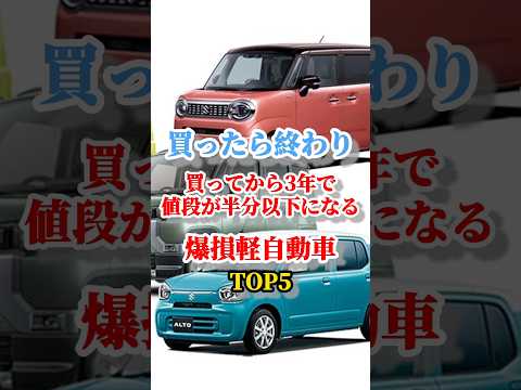 【買ったら終わり】買ってから3年で値段が半分以下になる爆損軽自動車TOP5#車 #中古車 #トヨタ #ホンダ #日産 #スズキって<人気の自動車だぜ。