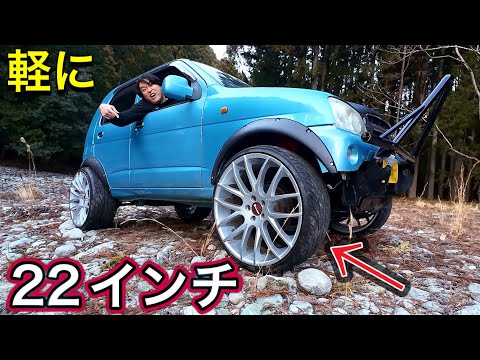 軽自動車に22インチ入れてオフロード走ったら車ボッコボコになった!って<人気の自動車だぜ。