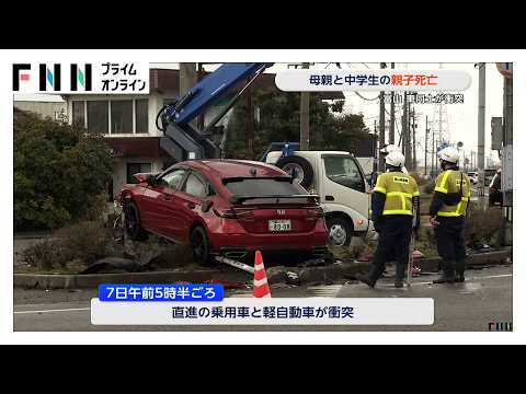 富山市の国道で乗用車と軽自動車が衝突し、軽自動車に乗っていた母親と中学生の親子2人が死亡しました。